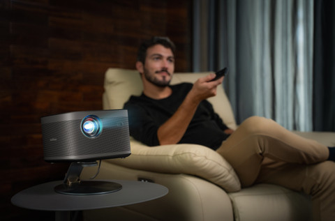 Mit der Lasertechnologie bietet der Beamer eine helle und scharfe Projektion.
