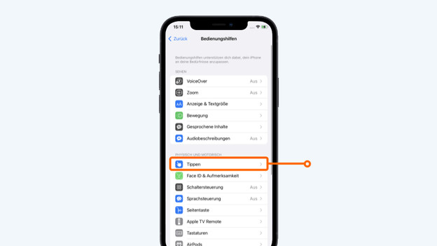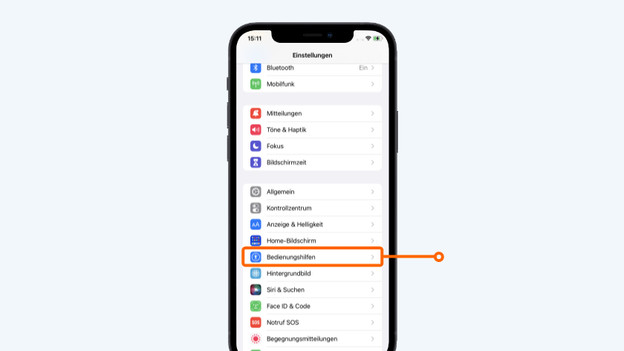 - Scrolle nach unten und tippe auf „Bedienungshilfen“.