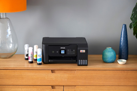 Drucke Tausende von Seiten mit nur einem Satz Tinte. Dieser Drucker arbeitet nämlich nicht mit Patronen oder Tonern, sondern mit Tinte aus einem großen nachfüllbaren Tintentank. Die Tinte kaufst du in günstigen Tintenflaschen. So druckst du besonders preiswert.