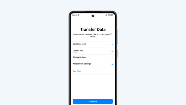 - On your old Android device, choose what data you want to transfer. Once you've selected everything, tap 'Continue'.