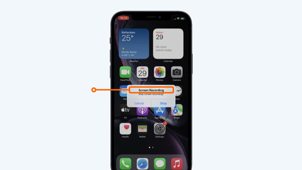 - Is the video over? Tap the red icon in the top left. Choose 'Stop'. The screen recording is saved automatically.