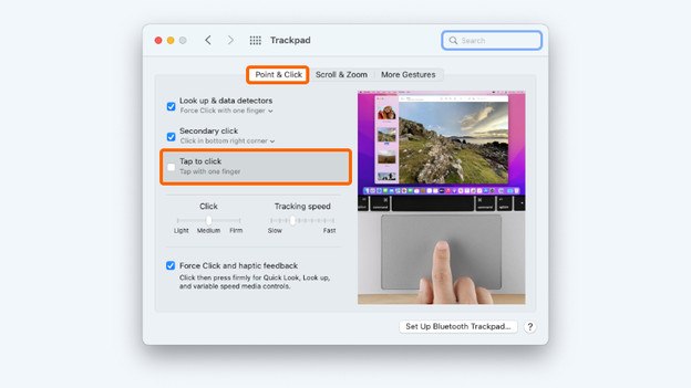 - Make sure there's no checkmark next to 'Tap to click' in the 'Point and click' tab.