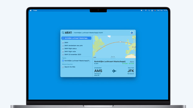 How much is 78+56? And 100 dollars, how many euros is that? I can answer these kinds of questions by using Spotlight on my MacBook. When I press the Command key and Space, Spotlight opens like a search bar, where I can type my question. This allows me to quickly solve a sum and check how much that vacation in America will really cost me.