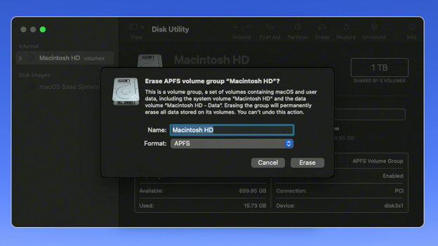 Now, erase the hard drive of your MacBook. Follow these steps:
