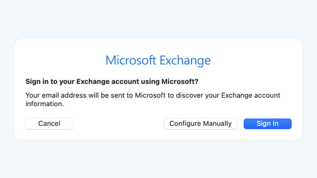 - If this is the first time you log in with a Microsoft Exchange account, a window appears to allow macOS to use Microsoft Exchange services.