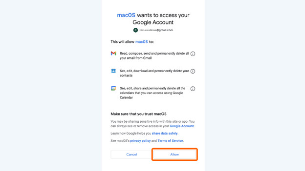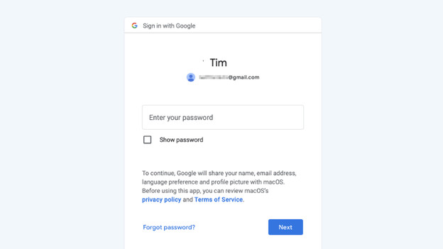 - If it's the first time you log in with a Google account on your Mac, Google will check if it's really you. We use an SMS code in the example, but this can also be done via a different email address.