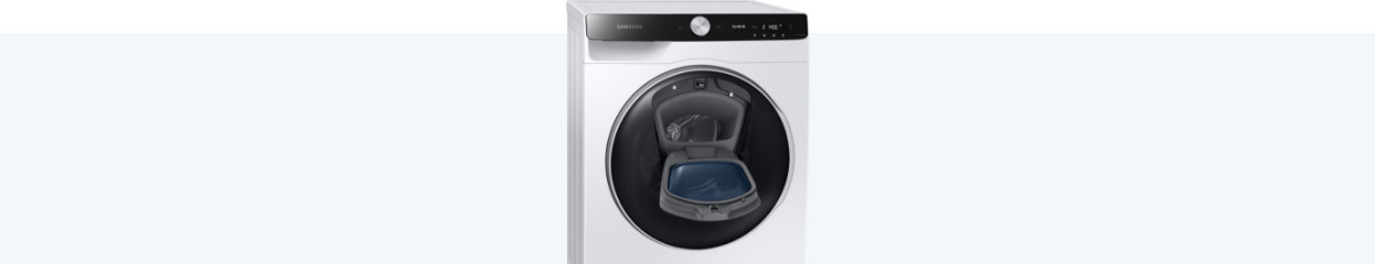 We've all been there. You start a cycle and suddenly find a pair of pants that have to be washed. With some washer dryer combinations, you can add laundry during the cycle without any problems. Simply press a button to unlock the door at the right moment. This allows you to add laundry without water pouring onto your floor. Samsung AddWash washing machines have a special latch in the drum door. This way, you can add laundry without having to wait.