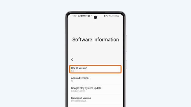 - At the top, you'll find which One UI version your Samsung smartphone has.