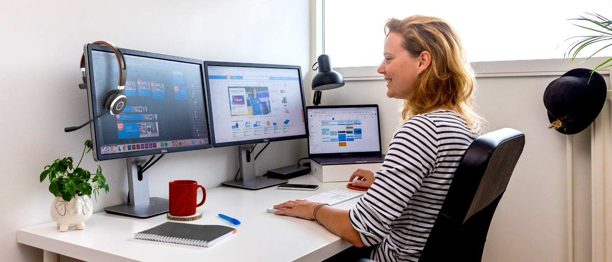 Did you choose € 1200 or more? Employees can buy a complete home office with a desk, desk chair, high-end monitor, and accessories such as a headset and laptop stand.