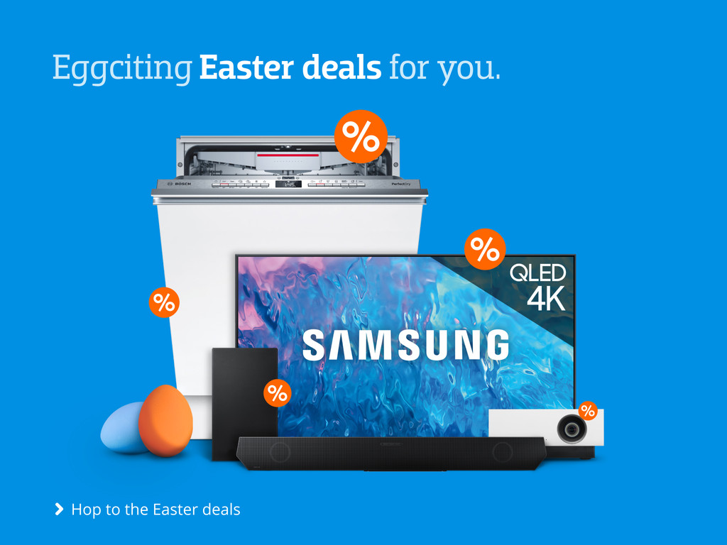 You can find our Easter deals from 23 March 2026 to 5 April 2026. Looking for a new high-end laptop or an energy-efficient washing machine? Or do you want to make your loved ones happy with an Easter gift? At Coolblue, you can find the right deal and save a lot with our discounts. Hop to the deals.