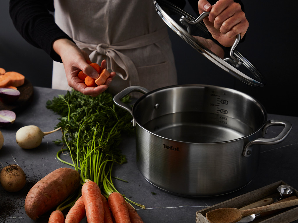 The Tefal Ingenio pans are space-efficient and you can also place them in the oven. That's because you can easily detach the handle from the pan. The pans are suitable for every heat source. With most cookware sets, several accessories are included. For example, you can close the pans with the stay-fresh lid so you can store the food in the fridge. Stack the pans after use, so you save space for other items.