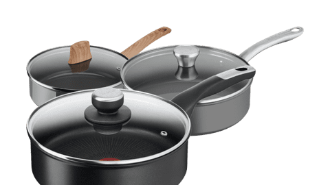Tefal Ingenio pans have a detachable handle. That means you can also use the pans as oven dishes or easily stack them after use. Most sets include extra accessories like lids or kitchenware.