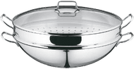 Embrace Asian cuisine with the 4-piece, 36cm WMF Wok/Wadjan Macao set. This very complete wok set can be used for stir frying or steaming traditional Asian dishes. The Wadjan, steamer insert and steamer rack are fully made of very durable 18/10 stainless steel that will last for years. Thanks to the glass lid, you can always keep an eye on your ingredients. In addition, the 4-piece, 36cm WMF Wok/Wadjan Macao set is suitable for gas, induction, ceramic, and electric heat sources and the pan is dishwasher safe.