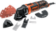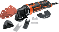 The BLACK+DECKER MT300KA-QS oscillating multi-tool lets you effortlessly tackle any job. The MT3000KA-QS is very versatile, thanks to the wide range of included accessories. For example, 4 saw blades, a sanding pad, and 6 sanding sheets, which all come in a useful case. The MT300KA-QS is sure to last for years thanks to its sturdy design, and the slim body with a soft-grip handle ensures you work very comfortably with this multi-tool. The speed of the multi-tool can be adjusted between 10,000 and 22,000RPM, which gives you more control when you perform different kinds of work.