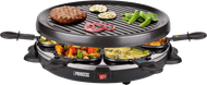 The Princess Raclette 6 Grill Party 162725 is ideal for a round table. You can use it with 6 people at the same time. Grill a small steak or some mushrooms on the grill plate while you make an omelet or pancake in the raclette pan. Thanks to the non-stick coating, you don't need as much oil and the ingredients won't stick. After use, you can remove the grill plate and put the plate and the pans in the dishwasher.