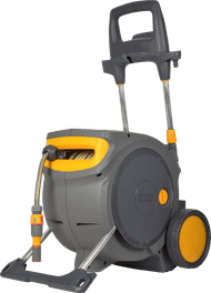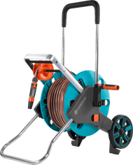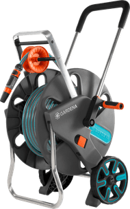 The GARDENA CleverRoll L Easy Set comes with a 50m long garden hose, so you won't have to skip any spot in the garden. With the ergonomic handle and hose guide, you can roll up the garden hose evenly. The handle is soft on your hands thanks to the soft grip. The hose cart also has a Kick and Stand system with which you fold out the frame under the cart, and stably place it on the ground. The hose cart stays in place even when you pull on the hose, thanks to this system.