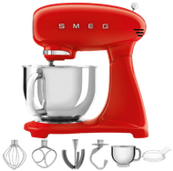 With the SMEG SMF03RDEU Red, you have a vintage stand mixer on your counter that you can use to make bread dough and cake batter. The included attachments and 10 integrated settings give you a lot of control over the end result. You can use the lower settings to knead the ingredients into good dough. Use the higher settings to whip up cream for on top of your cake. The soft start ensures that the mixer starts mixing gently. This way, the batter doesn't get whipped out of the 4.8-liter stainless steel mixing bowl. When you're done baking, you can easily clean the flexi beater, dough hook, and mixing bowl in the dishwasher. You have to wash whisk and anti-splash lid by hand.