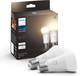 With the Philips Hue White E27 800lm Bluetooth Duo Pack, you can provide your home with smart lighting. Connect these lights directly to your phone via Bluetooth. Now, you can dim the lights or switch them on and off via your phone. If you connect the smart lighting to a voice assistant, you can also control it with your voice. That means you won't have to get out of your lazy chair to switch on or dim your smart lights. Do you also want to switch the lights on and off when you're not at home or set timers? Add a Philips Hue Bridge later. This allows you to connect your smart lights to the internet.