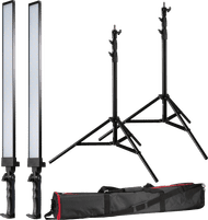 Two fairly narrow high lights to illuminate a green screen in a small studio, for example. Takes up very little space, especially compared to softboxes. Because they are LED bars in aluminum fixtures, they do not get more than lukewarm. Lots of light and can be dimmed as desired. Color fastness fine, color temp cannot be adjusted. Only on 230 Volt, no batteries.