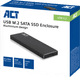 With this ACT AC1600 M.2 SATA SSD enclosure, you can turn your internal SSD into an external storage device. You can easily connect your SSD to your laptop or desktop with the included USB-A cable. Thanks to the sturdy aluminum enclosure, you drive is well-protected from fall damage and impact damage. In addition, you can safely take your SSD with you in the enclosure due to the light weight and compact size. The enclosure is smaller than your hand and easily fits into your pocket. This way, you'll always have your files on hand.