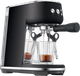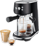 The Sage The Bambino Black Truffle is made of barista quality in a small package. The piston machine is designed to use the right amount of freshly ground coffee beans for a full taste. The brewing process starts with a pre-infusion at low pressure, followed by an extraction process at a high pressure. The accurate temperature control makes sure the brewing temperature is constant, so the coffee won't burn. You can make 1 or 2 cups of coffee at the same time with the useful control buttons. It's possible to change an espresso into a cappuccino by frothing milk in the little pitcher. The powerful steam wand can froth the milk automatically. Thank to the ThermoJet heating system, you can use the machine in 3 seconds. The cleaning indicator shows when the machine needs to be cleaned.