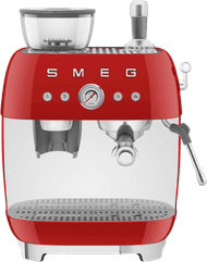The SMEG EGF03CREU Cream has a built-in coffee grinder, so you can grind your own coffee beans. In addition to the built-in coffee grinder, you also receive a tamper and milk pitcher. That way, you get a piston machine that allows you to get started right away. The only thing you're missing, are the coffee beans. The dual heating system heats up the coffee and milk separately. That way, you can make an espresso and froth milk for a cappuccino or latte macchiato at the same time. On the built-in manometer, you see exactly with how much pressure you're making your espresso. You can easily adjust your preparation to this. You choose the grind size, temperature, amount, and pre-infusion profile. That way, you can brew an espresso exactly to your liking.