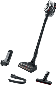 With the Bosch BSS825ALL stick vacuum, you can easily vacuum many floor types. The parquet brush ensures that you remove dirt from delicate floors without scratching them. Are there places in your rooms that are hard to reach? Use the flexible crevice tool to even tackle hard-to-reach crevices. You're not bothered by unpleasant loud noises, because the vacuum has a noise level of just 60dB. With the Bosch stick vacuum, you can flexibly move through your rooms. With the 2-in-1 multi-surface tool, you can remove dust from furniture and baseboards in no time. The LED lighting is particularly useful, because you don't miss any dirt. Even in dark places, such as under the couch.