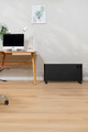 Bought the heater to keep our insulated garage a bit warmer than before. The stove after receipt immediately unpacked and put on the legs and turned on in the garage. The sun was shining so consumption will be compensated a bit. The heater got the garage a lot warmer very quickly. The next day hung the stove on the wall where it was supposed to be, about 60cm from the ground, which is handy with small children, because the bottom of the stove stays cool.