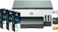 With the HP Smart Tank 7605 + 1 set extra ink bundle, you can get enough ink for your printer. You can print up to 12,000 black and white pages and 16,000 colored pages thanks to the extra ink bottles. With the HP Smart Tank 7605, you can print in duplex automatically, so you can also save on paper. Thanks to the automatic document feeder, you can scan, copy, or fax up to 35 pages in one go. That's very useful. You can control the printer via the button on the printer or via the HP Smart app. In this app, you can set shortcuts easily, so the printer does what you want with the press of a button. Via the USB port, you can scan you documents directly to your USB flash drive or you can print your photos directly from the stick.