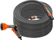 GARDENA Fabric Hose Liano Set 30m Hose + GARDENA Classic Multifunctional Spray Nozzle