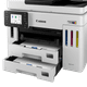 The Canon MAXIFY MegaTank GX7150 is a business 4-in-1 ink tank printer that you can use to print, scan, copy, and fax. This printer is suitable for companies that want to print often and affordably every day. With 1 set, you can print up to 9000 pages in black and white and 14,000 in color. You can print 24 black and white pages per minute and 15 colored pages per minute. That way, you can quickly print business documents in high quality. You can place up to 50 sheets in the DADF input tray, so the printer can automatically scan or copy an entire stack in duplex. You can send print jobs via WiFi, WiFi Direct, Apple AirPrint, or wired via a USB cable. You can do so securely, thanks to the various forms of security. You can also easily manage business documents with the special business functions.