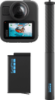 With the GoPro MAX2 Starter Pack, you have everything you need for a long outdoor recording session. You get an extra Enduro battery and an extendable tripod. With this camera, you can record in 8K. This allows you to enjoy the sharpest 360-degree footage and never miss a moment. You can see the smallest details, such as birds flying by in the distance. Thanks to HyperSmooth image stabilization, you can capture smooth images. The included stick is made of strong and lightweight carbon fiber. This lets you record comfortably. You can extend the selfie stick up to 1m or shorten it to 25cm. This way, you can record from above and easily store it again. Thanks to the extra battery, you can record even longer without worries and enjoy longer recording sessions.