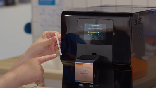 On this page, we'll explain how to make your Krups Intuition Preference ready for use. You do this in 4 steps. That way, you can connect the Krups coffee machine, install the water filter, set the water hardness, and connect the milk system. You can do this in 15 minutes.