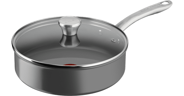 With the Tefal Renew+ Ceramic Frying Pan Set 24cm + 28cm, you'll get 2 environmentally-friendly frying pans. That's because the pans are made of 100% recycled aluminum. You can prepare potatoes in the small frying pan and use the large frying pan for large pieces of meat. Thanks to the strong ceramic coating, you can prepare food more healthily. So this coating is free of harmful chemicals. You can see at a glance when the pan has reached the right temperature. The Thermo-Signal dot becomes plain red when the pan is hot enough. That's useful, because you don't need to keep your hand above the pan anymore. Are you done cooking? Place the pans in the dishwasher.