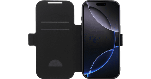 Protect your Apple iPhone 17 Pro from damage with the BlueBuilt iPhone 17 Pro Book Case Leather Black and BlueBuilt iPhone 17 Pro Screen Protector Glass. With the case and screen protector, you can absorb both scratches on our screen and bumps to the side. This protects your iPhone all around. With the book case, you can protect both the front and back of your iPhone. This book case is made of sturdy leather and feels luxurious. There's space for cards on the left side of the case, so you don't always have to take your wallet with you. You can securely close the phone case with a magnet, so your screen doesn't get damaged by loose keys in your bag. Want to put your phone down? The high edges provide protection and prevents scratches and damage. The case is made to fit the iPhone 17 Pro, so you can easily control the buttons and keep your camera free. You can wirelessly charge the iPhone 17 Pro with the case on it.