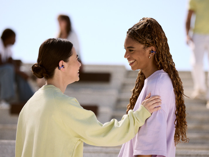 Da die Ohrhörer leicht sind und nicht in deinem Gehörgang sitzen, trägst du sie den ganzen Tag lang komfortabel. Dank der OpenSound Technologie hören andere um dich herum nichts von deiner Musik oder deinen Telefongesprächen.