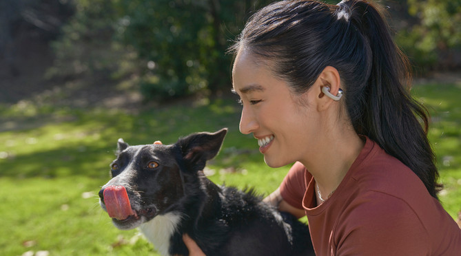 Dank des offenen und leichten Designs trägst du deine Open-Ear-Kopfhörer bequem den ganzen Tag lang. Du verwendest sie dank der Spritzwasserdichte und des stabil um dein Ohr sitzenden Designs auch beim Sport.