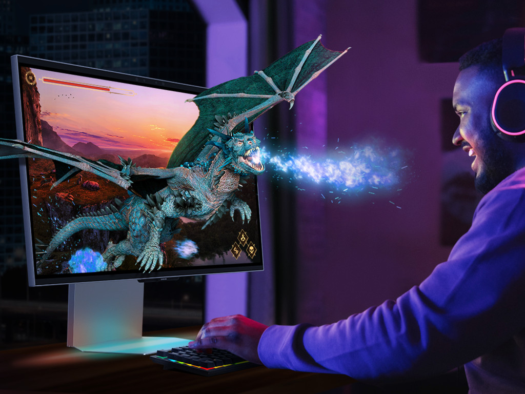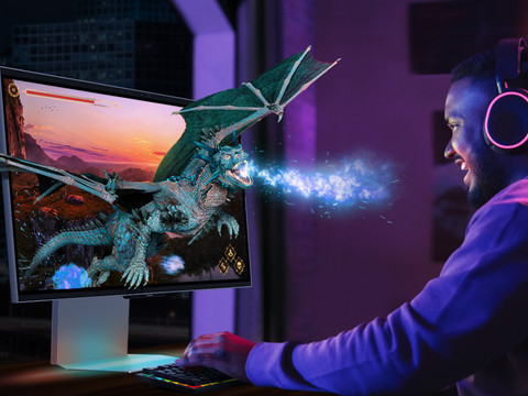 Mit dem Samsung Odyssey 3D LS27FG900XUXEN spielst du mit einem 3D-Bild, ohne dass du eine 3D-Brille verwendest. Außerdem wird dank der 4K-Auflösung jedes Detail scharf dargestellt.