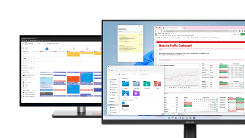 Vergrößere mit einem Business-Monitor für ein doppeltes Setup deinen Bildschirmplatz und behalte den Überblick über deine Tätigkeiten.Public Display