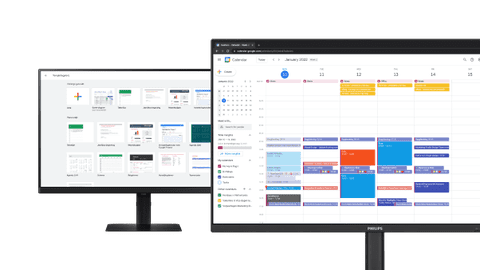 Mit zwei Bildschirmen nebeneinander verdoppelst du die Bildschirmfläche, an der du arbeitest. So öffnest du mehr Fenster und Programme nebeneinander, ohne zwischen Tabs hin- und herwechseln zu müssen. In diesem Artikel erklären wir dir weitere Vorteile.