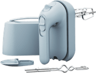 Bist du auf der Suche nach einem einfachen Handmixer? Der Bosch MFQ36400 kommt mit zwei Schneebesen und zwei Knethaken. Mit fünf verschiedenen Stufen und einer Turbofunktion lassen sich viele verschiedene Zutaten rühren, aufschlagen oder kneten. Dank einer Leistung von 450 Watt hat der Handmixer genug Kraft, ohne dass gleich alles aus der Schüssel spritzt. Wenn du fertig bist, verstaust du das Kabel einfach im Gerät selbst, sodass der Handmixer nicht viel Platz in Anspruch nimmt.
