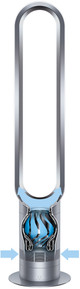 Dieser Ventilator hat keine Blätter. Deshalb setzt sich kein Staub fest. Da er keine drehenden Blätter hat, ist dieser Ventilator zudem tier- und kinderfreundlich.