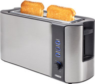 Möchtest du nicht nur Sandwiches, sondern auch Baguettes und Paninis rösten? Dann wähle den Princess Long Slot Toaster mit robustem Edelstahlgehäuse. Der hat nämlich 1 langen Schlitz. Er hat sechs Bräunungsstufen und auch eine Aufwärm- und Auftaufunktion. So hast du mehrere Möglichkeiten. Du brauchst dir keine Sorgen um verbrannte Brotscheiben zu machen, da diese von selbst ausgeworfen werden, wenn sie fertig sind. Und du hast nach dem Frühstück wenig zu putzen, denn das Krümelfach fängt alle Krümel ordentlich auf.