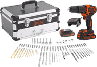Wenn du ein komplettes Set für verschiedene Bohr- und Schraubarbeiten suchst, dann ist der BLACK+DECKER BDC718AS2F-QW die richtige Wahl. Mit diesem 18-Volt-Akku-Schlagbohrschrauber bohrst du dank der Schlagfunktion nämlich in verschiedene Materialien. In Holz hast du eine Bohrleistung von 25 mm und in Metall und Stein von 10 mm. Dir stehen zwei 18-Volt-Akkus mit 1,5 Ah zur Verfügung, sodass du einfach weiterarbeitest, wenn einer leer ist. Der Akku ist mit anderen BLACK+DECKER Elektrowerkzeugen mit dem gleichen Akkusystem kompatibel. Das Arbeitslicht sorgt für etwas mehr Licht an dunkleren Arbeitsorten. Der Bohrer wird mit 80 Zubehörteilen in einem Flightcase geliefert, sodass du ihn ordentlich aufbewahren kannst und sofort genügend Zubehör vorrätig hast. Mit dem BDC718AS2F-QW bist du bestens ausgerüstet für dein Heimwerkerprojekt.