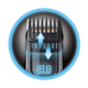 Den Remington MB4700 als bloßen Bartschneider zu bezeichnen, wird diesem Pflegeset nicht gerecht. Dieser professionelle Trimmer bietet nicht weniger als 176 Längeneinstellungen bei einer Mindestlänge von 0,1 Millimetern. Du stellst die ideale Länge präzise über den Touchscreen auf dem futuristischen digitalen Bedienfeld ein. Die GroomMotion-Technologie erkennt, wenn du den Trimmer in der Hand hältst, und schaltet den Trimmer ein. Das Display leuchtet auf und der Trimmkamm bewegt sich automatisch zur zuletzt verwendeten Position, sodass du schnell loslegen kannst. Darüber hinaus überprüft der SenseSpeed-Sensor die Bartlänge und stellt die optimale Geschwindigkeit der Klingen entsprechend ein. Du verwendest diesen Bartschneider bis zu 50 Minuten kabellos. Unterwegs lädst du den Trimmer problemlos über ein USB-Kabel auf.