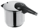 Mit dem WMF Perfect Premium Schnellkochtopf 6,5 l kannst du in kurzer Zeit unterschiedliche gesunde Mahlzeiten zubereiten. Du hast die Wahl aus zwei Kochstufen, speziell zum Schutz der Vitamine oder für eine sehr schnelle Zubereitung der Mahlzeiten. Auf der Stufe zum Schutz der Vitamine kannst du dein Gericht mit einer Temperatur von 107 °C garen. So kannst du mit diesem Schnellkochtop innerhalb von 20 Minuten eine vollständige Mahlzeit auf den Tisch zaubern. Dank des hitzebeständigen Griffs, der Verriegelung und der Drucksicherung ist der Topf sicher. Wenn alle fertig sind mit Essen, dann einfach den Griff abnehmen und Deckel sowie Topf in den Geschirrspüler stellen.