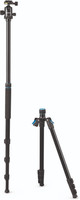 Das Cullmann Rondo 480M Kugelkopf RB8.5 ist ein stabiles Stativ und Monopod in einem mit Kugelkopf. Dieses Stativ hat eine hohe maximale Arbeitshöhe von 185 Zentimetern. Vollständig eingeklappt ist das Stativ 48 Zentimeter lang. Du kannst einen Fuß vom Stativ abnehmen und diesen als Monopod verwenden. Dadurch kannst du einfacher beim Fotografieren den Standpunkt wechseln. Auf einem unebenen Untergrund kannst du die Beine unabhängig voneinander einstellen, damit das Stativ gerade steht. Dies überprüfst du mithilfe der Wasserwaage. Um das Stativ stabil aufzustellen, hängst du zusätzliches Gewicht an den Haken unter der Mittelsäule. So weht das Stativ nicht so leicht um. Mit einer Tragkraft von vier Kilogramm kannst du Spiegelreflexkameras auf dieses Stativ stellen.