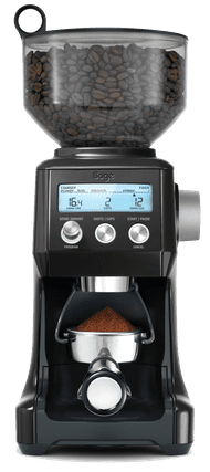 Der The Smart Grinder Pro Black Truffle ist eine benutzerfreundliche und vielseitige Kaffeemühle. Auf dem Display kann man bequem die Dauer des Mahlvorgangs, den Mahlgrad und die Anzahl der Kaffeeportionen, für die man mahlt, ablesen. Darüber hinaus zeigt das Display an, welcher Mahlgrad sich für welche Kaffeesorte eignet. Das ist praktisch, da man so schnell einen Ausgangspunkt zum Perfektionieren des passenden Mahlgrads erhält. Im Lieferumfang der Kaffeemühle befinden sich ein großer Siebträgereinsatz, ein kleiner Siebträgereinsatz und ein Mahlbehälter mit Deckel. Somit kann man neben Kaffee für einen einfachen oder doppelten Espresso auch Kaffee in großen Mengen mahlen und aufbewahren. Das ist etwa für Filterkaffee angenehm. Dank der 60 Mahlgrade lässt sich der Mahlgrad besonders präzise einstellen, sodass man viel Kontrolle über das Endergebnis hat.
