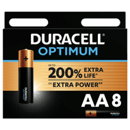 In dieser Packung findest du 8 Duracell Alka Optimum AA-Batterien. Die Batterien versorgen deine Haushaltsgeräte, Taschenlampen oder das Spielzeug deiner Kinder. Die Batterien haben ein Kathodensystem. Das bedeutet, dass einige Geräte bis zu 200% länger halten oder mehr Leistung für eine bessere Performance bekommen.