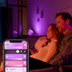 Die Philips Hue Iris White & Color ist eine Tischlampe mit einer Farbpalette von 16 Millionen Farben. Trotz ihrer kompakten Größe hat diese Lampe eine hohe Lichtausbeute, sodass du ganz einfach für die Beleuchtung großer Räume einsetzt. Du verbindest die Lampe über Bluetooth mit der Philips Hue App und bedienst sie anschließend mit deinem Smartphone oder Tablet. So passt du die Atmosphäre in deinem Haus einfach an. Dank Bluetooth benötigst du keine Bridge, um die Lampe mit deinem Sprachassistenten zu verbinden. Möchtest du die Hue Iris ein- und ausschalten, wenn du nicht zuhause bist, oder vielleicht einen Timer einstellen? Lege dir dann trotzdem noch eine Philips Hue Bridge zu.